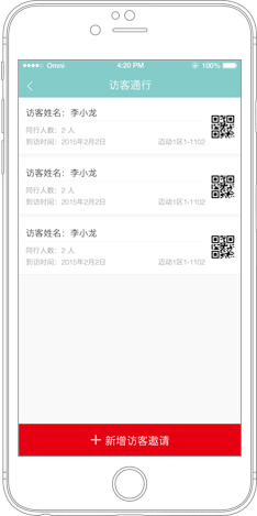 系统可以为你的客人生成一个访问通行证。门卫“扫一扫”就可以啦。